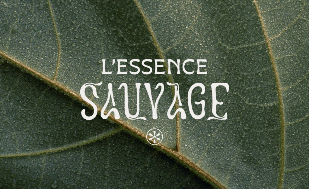 Mon travail principal à consisté en la création de la typographie du mot clé sauvage, conçue dans une esthétique organique à l’inspiration art nouveau, habillée de formes végétales dans un souci du détails, de symétrie et d’équilibre. Un symbole minimaliste à l’esthétique très contemporaine, placé en dessous du logotype typographique, rappelle dans son concept le nom de marque en symbolisant la pétale d’une fleur qui, en tombant, se transforme en goutte d’essence. Enfin, un monogramme dit ambigramme complète l’identité visuelle. Héritage des grandes maisons de parfumerie et de couture, reprenant les initiales du nom de marque, ce dernier à la particularité d’être conçu de sorte à rester lisible dans plusieurs orientations, à l’endroit comme à l’envers.